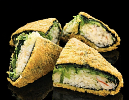 Рис, Лосось, Нори, Огурец, Салат, Соус Кимчи, Чеддер.