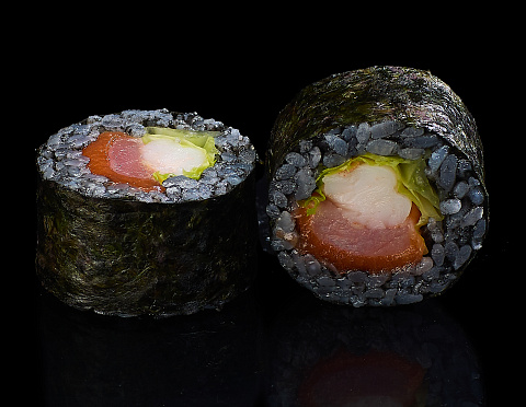 Креветка, Лосось, Тунец, Чернила каракатицы, Салат, Рис