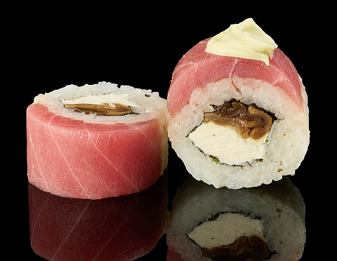 Рис, Сыр творожный, Маринованная тыква Пампио, Соус Васаби, Тунец